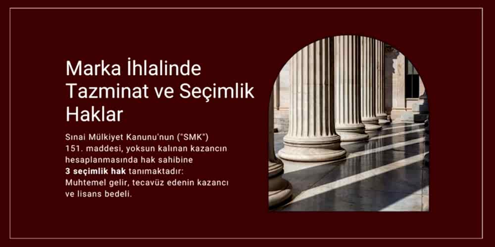 Marka ihlalinde tazminat talep etmek, yalnızca dava açmaktan ibaret değildir. Sınai Mülkiyet Kanunu’nun (“SMK”) 151. maddesi, yoksun kalınan kazancın hesaplanmasında hak sahibine üç seçimlik hak tanımaktadır: Muhtemel gelir, tecavüz edenin kazancı ve lisans bedeli. Bu üçünden yalnızca biri talep edilebilir. Hangi yöntemi ne zaman tercih etmeniz gerektiği, Yargıtay’ın bu konudaki tutumu ve uygulamada yapılan kritik hatalar bu yazıda ele alınmaktadır.
